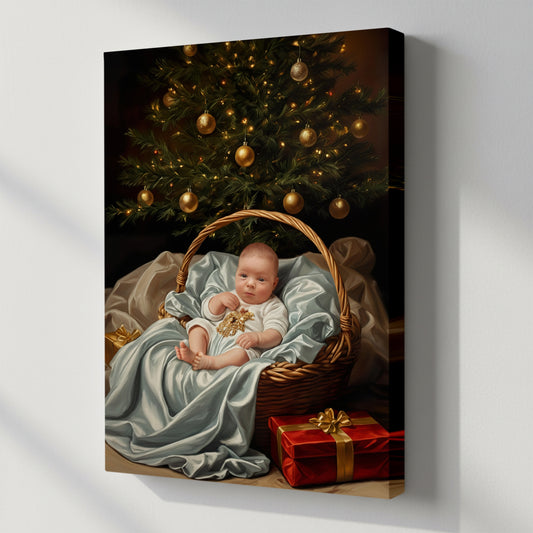 Baby Christmas Basket – Персонализиран детски новогодишен портрет на канвас