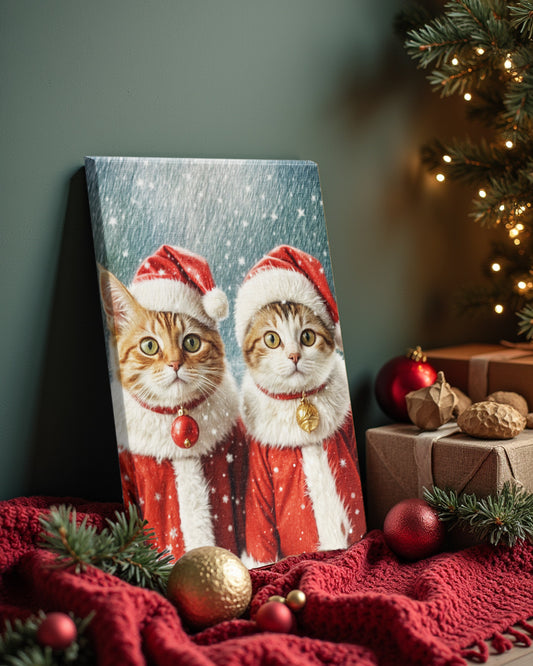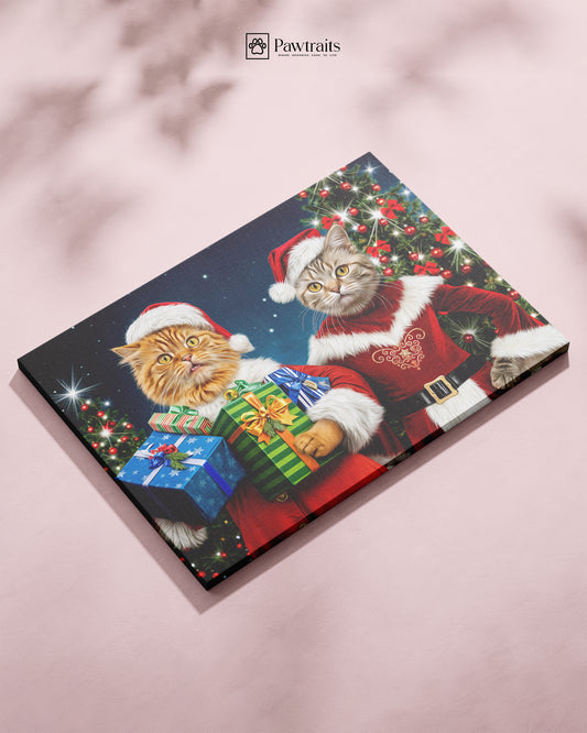 Santa's Purr-fect Helpers - Персонализиран новогодишен портрет на канвас