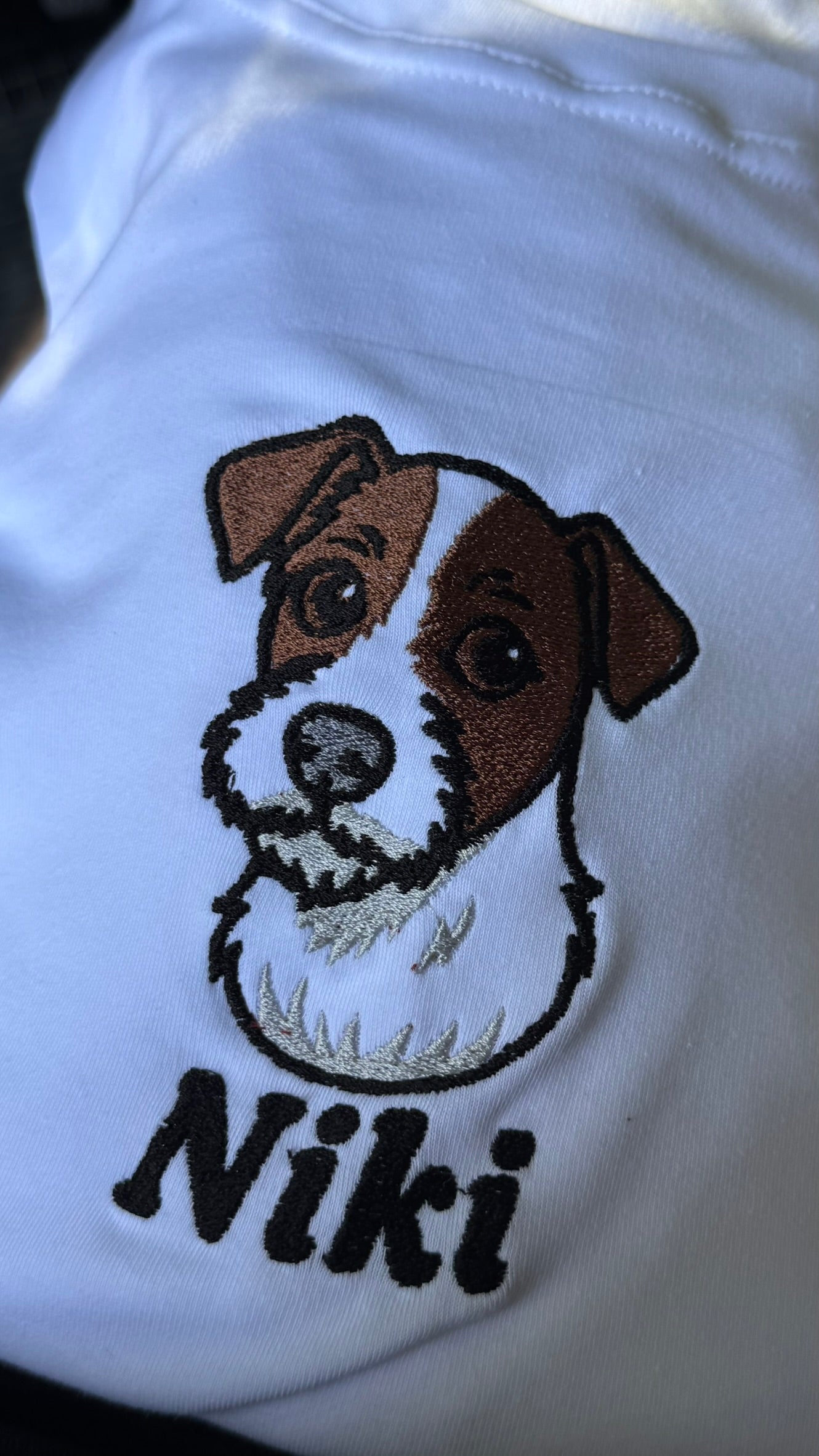 Персонализиран везен блузон со Вашиот миленик - Лик во боја и име на ракав (Полн Вез )